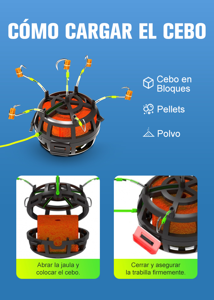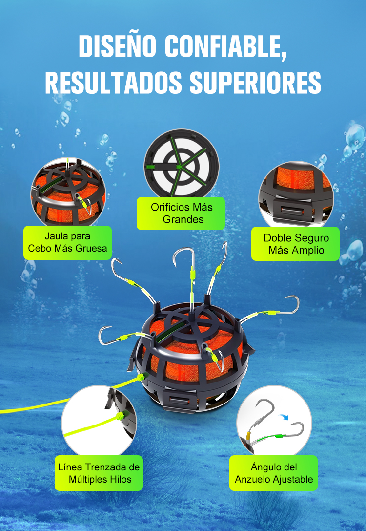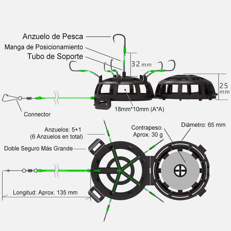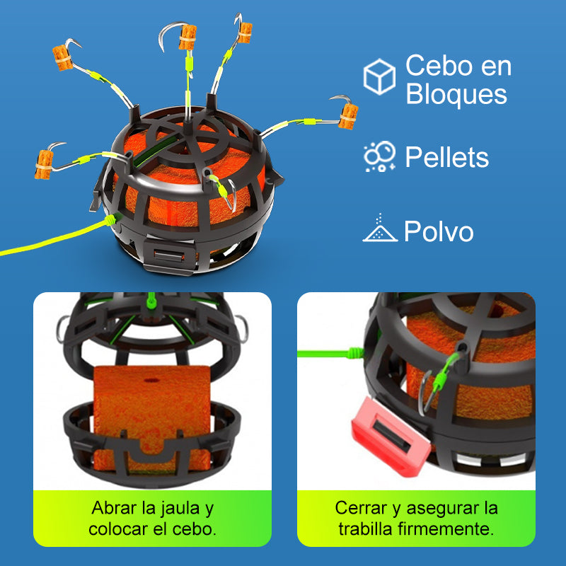 Anzuelo Invertido con Jaula para Cebo de Fondo